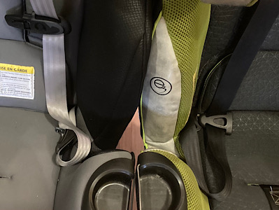 Это лялечный подголовник. Он есть в обоих креслах. Только в старом кресле он расположен на своем месте. А здесь непонятно где. И не обхватывает голову. И мне кажется из-за этого кресло не пользуется популярностью. Мы вытащили вкладыши. Старший будет сидеть без них.
