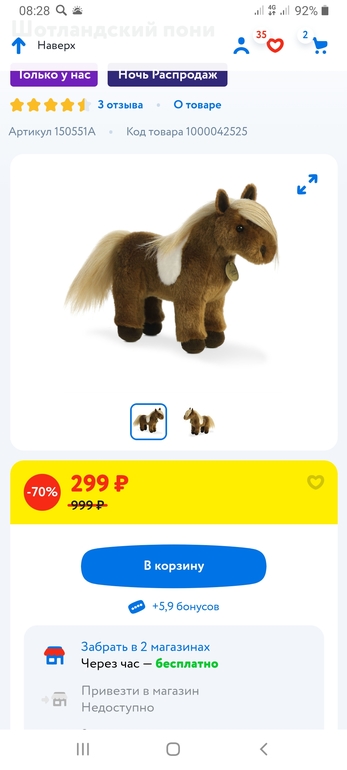 Мой лошадь заказал ДМ. Тоже на Ханса весь день смотрела. А в ДМ за 240р с баллами выходит. Но изначально 1000 ж.