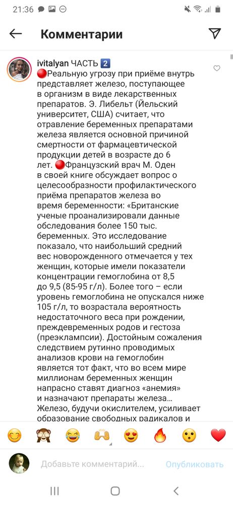 marucia171, я вот кстати всю беременность первую пила железо, 120 был гемоглобин. В итоге после 30 недели ребёнок почти перестал расти, очень плохой кровоток был, врач так и не поняла в чем дело, идеальная беременность до этого момента была.. Теперь вот думаю может и правда в железе дело было..