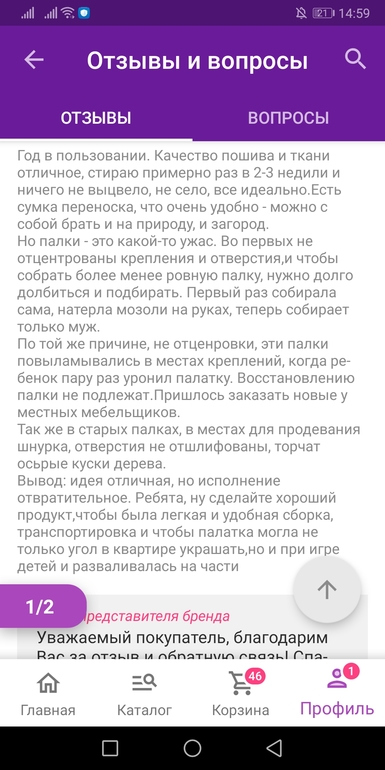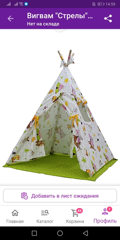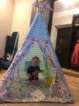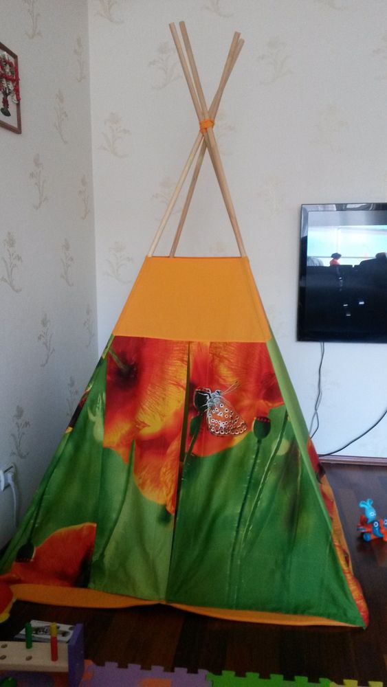 Покупали на год сыну, но заинтересовал ближе к 2. Играет там иногда, прячется, читаем там книжки. Это мой отзыв о вигваме. Качество палок это 💩 💩💩