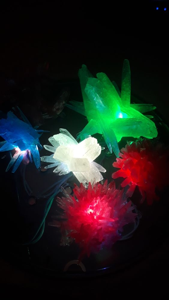 Для получения голубого и розового оттенка пришлось использовать прозрачный(белый)посев и его практически не осталось для создания белого кристалла