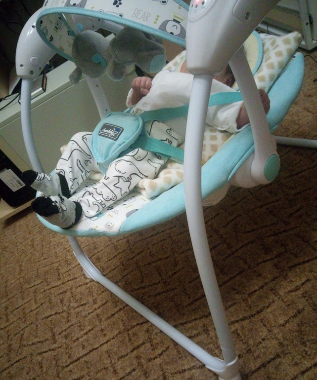 помощь мне у нас были электрокачели бренда амаробейби, компактные, размещались на нашей маленькой кухоньки. Очень отвлекает ребенка от маминых рук, я ставила качель , клала ребенка и малыш увлеченно слушал мелодии или играл в навесные игрушки, а уж когда ставила на таймер раскачивания, хватало 5 минут и малыш засыпал. Для меня качели отличная штука.