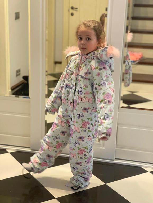 Но они очень маломерят, наш 122 примерно сейчас, ну максимум 125. А комбез 128,маловат,коротковаты брючины и рукава, вот следующий, 134 размер, отлично сидит сейчас, и на следующий год будет хорошо)