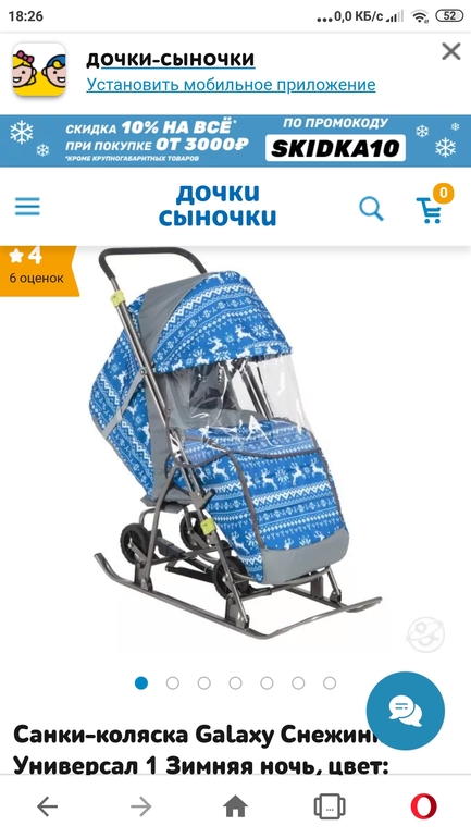У нас такая - один в один. Не очень удобно переключать на колеса, ногой в рамку с первого раза не попадаю)) Покатались одну зиму. Для ребенка хорошо, спать уютно, она со всех сторон закрытая. Полозья дурацкие, узкие очень. И кувыркучая она, эта конструкция, неустойчивая.