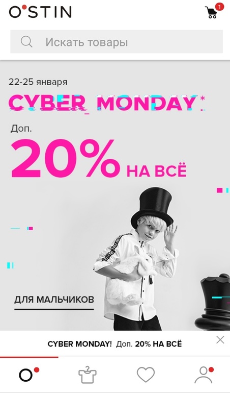 надежда в Выбор товаров 5 лет Ostin дополнительно 20% в приложении на все товары Распродажи. Скидки. Акции. Посмотрите еще 20 записей на эту тему Отменить Ответить keisy Не очень интересно. Бонусы при этом не даёт списать. А бонусы списывают 30%. 22.01.2021 Ответить Ирина А поле промокод действительно? Тогда еще -10% за забытую корзину можно попробовать 22.01.2021 Ответить keisy По описанию в условиях эта акция идет сама в виде промо. И промо 10% плюсуется с 30% баллами. 22.01.2021 Ответить Ирина Эх, А я как на зло потратила все свои баллы буквально 2 дня назад:( 22.01.2021 Ответить надежда keisy, бонусы есть не у всех 22.01.2021 Ответить keisy Их можно сделать. За регистрацию дают 500. 22.01.2021 Ответить надежда keisy, я знаю, но мне не охота плодить аккаунты, тут я заказала в удобном магазине на выбор и в удобное время приеду и заберу, что нужно. 22.01.2021 Ответить Татьяна а мне наплодить не проблема) длинное обсуждение, списываются баллы в итоге с минус 20 или нет? 22.01.2021 Ответить keisy Татьяна, нет 22.01.2021 Ответить Татьяна жаль, вышло б неплохо все вместе 22.01.2021 Ответить Lassie на Tmall -1000 Детской мир бейби гоу 1+1 Чаты Беременных Выберите чат: Январята-2026 Февралята-2026 Мартята-2026 Апрелята-2026 Майчата-2026 Июнята-2026 Июлята-2026 Августята-2026