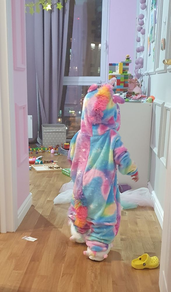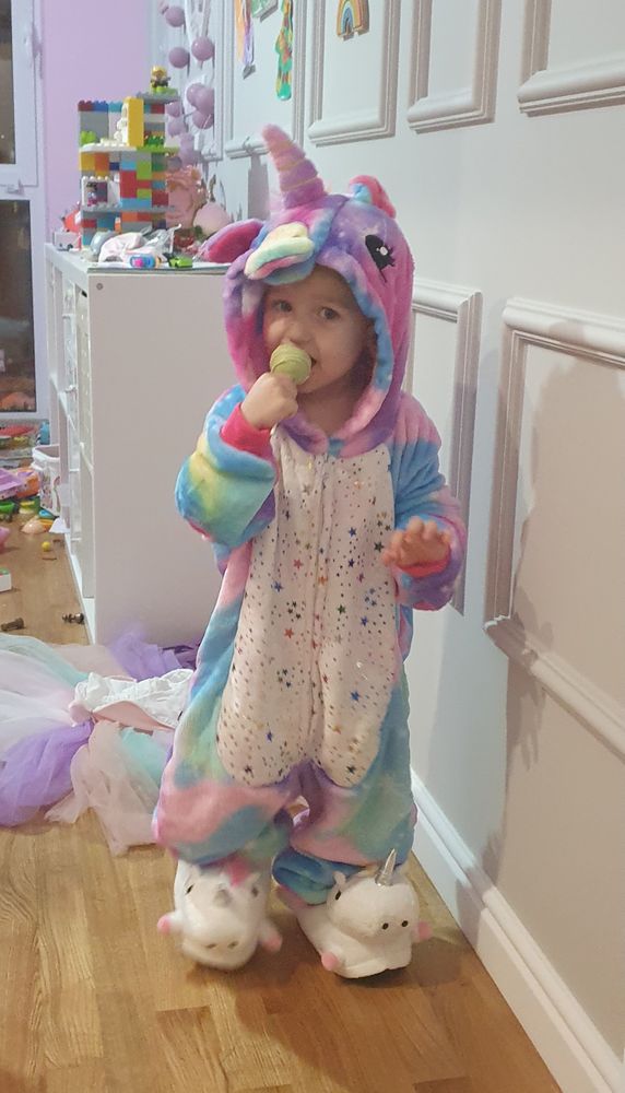 Самый забавный подарок - это кигуруми единорог с единороговыми же тапочками. Да, большеват еще прилично, но она второй день из него не вылезает🤣 и настроение поднимает своим видом🤣 старшей такой же подарили, поэтому у нас 2 единорога теперь))