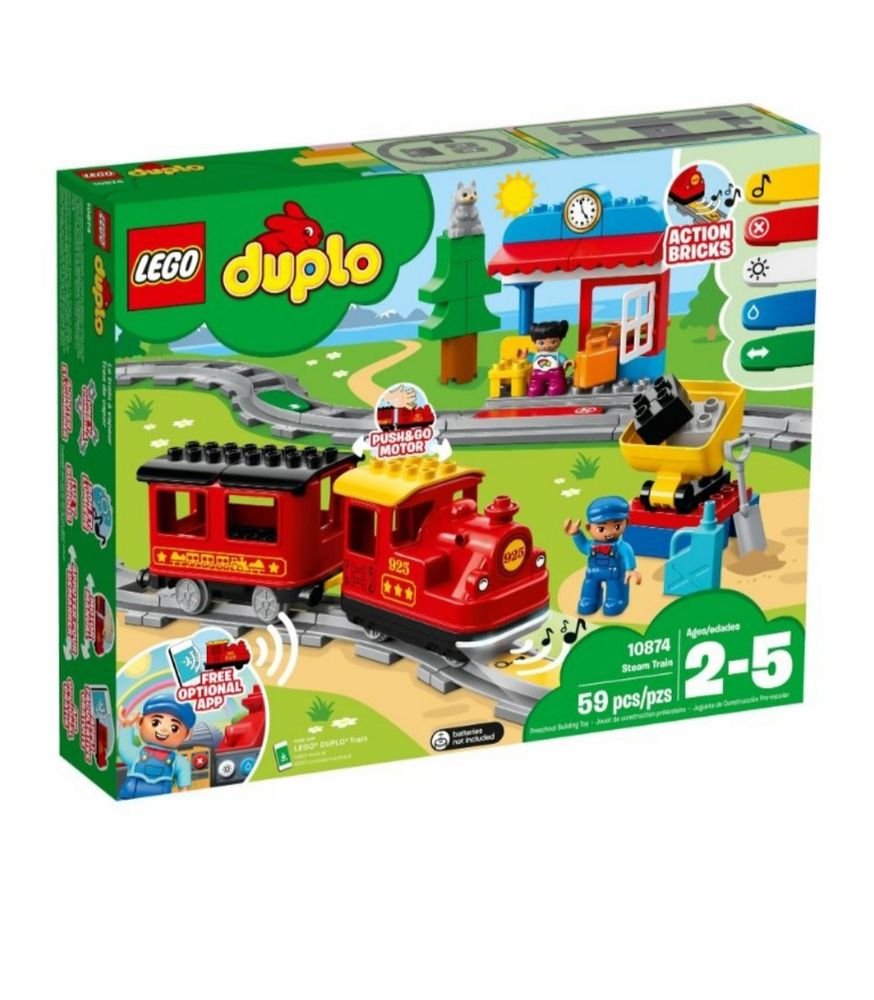Поезд Лего дупло с допнаборами. Ну, это я, можно сказать, себе подарила🤣 сразу скажу, что без допнаборов игры не получится, потому что ничего особо не построить. А так дупло получило второе дыхание (а еще пришлось под него еще один ящик выделить, потому что рельсы и особенно мост немало так места занимают). Но поезд классный)))