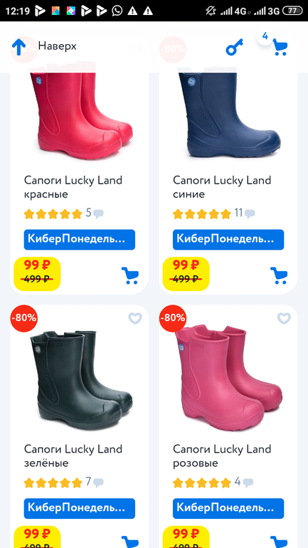 Вчера проверяла эти сапоги на кассе. 399 р даже с кодом, если верить продавцу. На сайте их нет, а в магазинах стоят на полках.