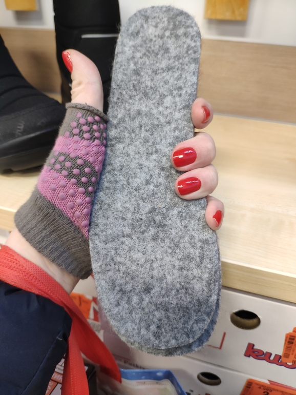 А это уже одинаковые модели. Слева 33р, справа 34р. И стельки от них:
