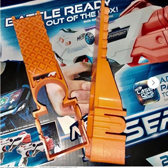 Вот так выглядит этот адаптер, крепится на сам Нерф спереди, в него вставляектся смартфон.
