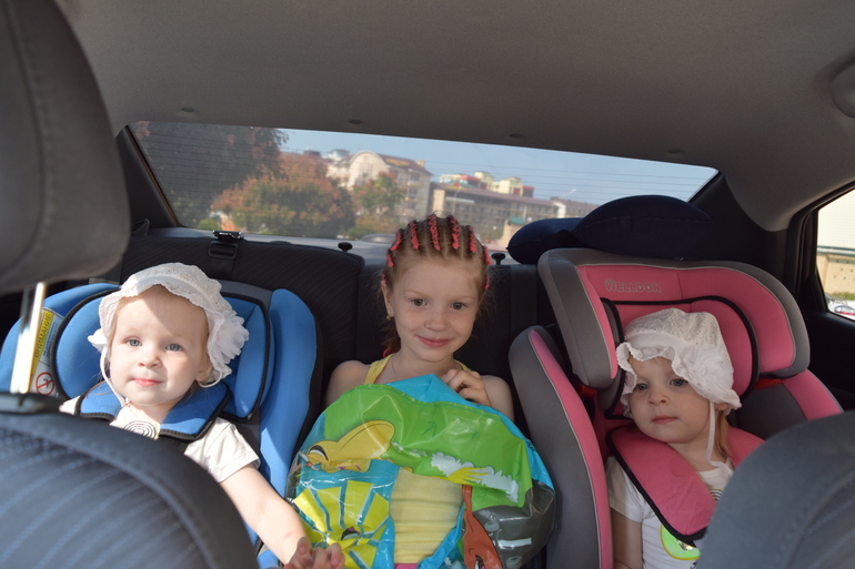 В нашу нынешнюю машину на заднее сиденье 3 автокресла никак не встанет, да даже взрослый человек с трудом впихивается между двумя детскими креслами, и комфортной такую поездку точно не назовешь, худенький ребенок еще может поместиться. В общем, среднее место мы используем в крайних случаях, для регулярных поездок впятером это совсем не вариант.