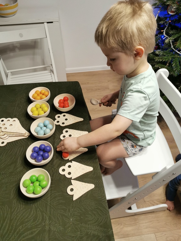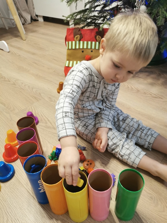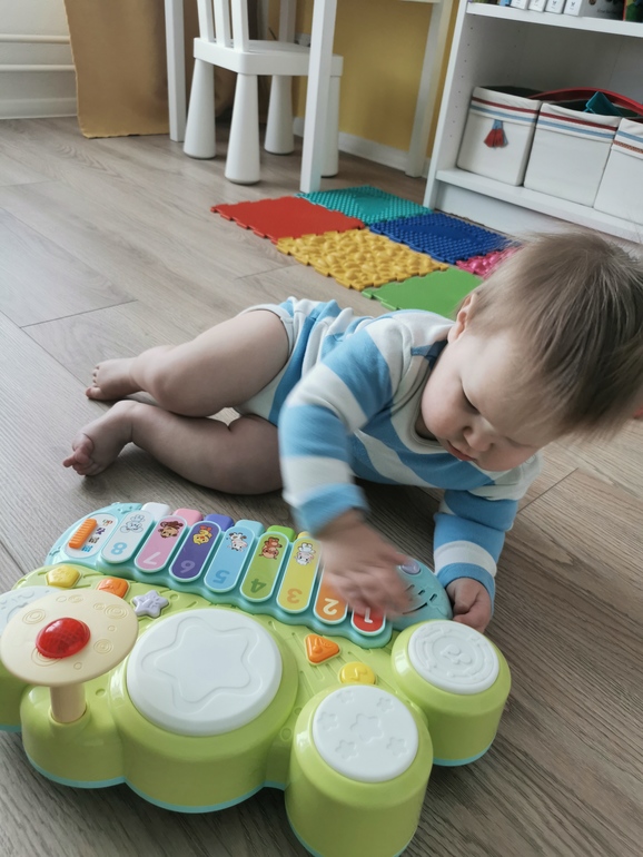 Ещё один классный сортер, обучение цифрам, счету, мотирике. Но как с карандашами - сам не достаёт. В общем, ожидаемо для меня, надо заниматься с ребёнком.