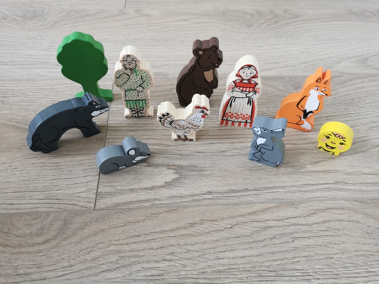 Деревянный конструктор Первые сказки - Курочка Ряба, Колобок, Теремок, Томик