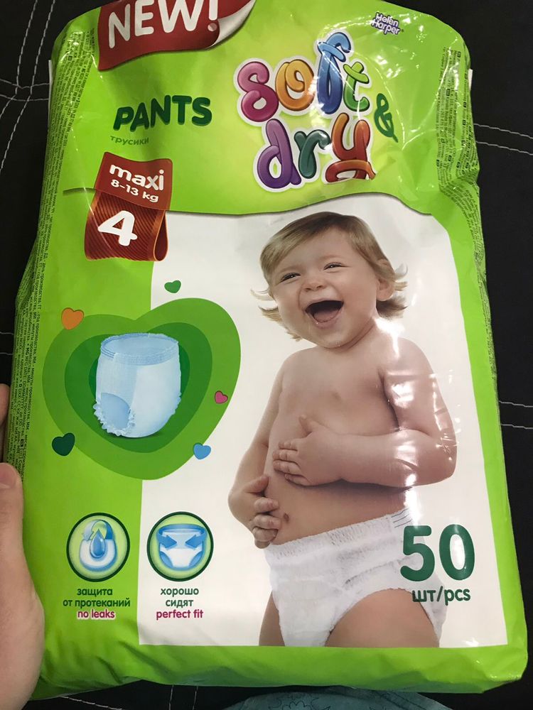 А на ночь я надеваю тоже Pampers но Premium Care, они не протекают и держат чуть ли не литр мочи 🙈 хотя я за ночь два раза меняю подгузник.