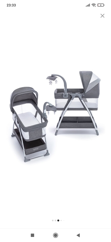 Люлька simplisity .Она как отдельная люлька и как кроватка приставная трансформируется.Можно колесики достать и на стопор поставить,можно качалку сделать.У меня с тремя была она.В четвертый раз тоже ее куплю.Места занимает мало,можно возить/передвигать.