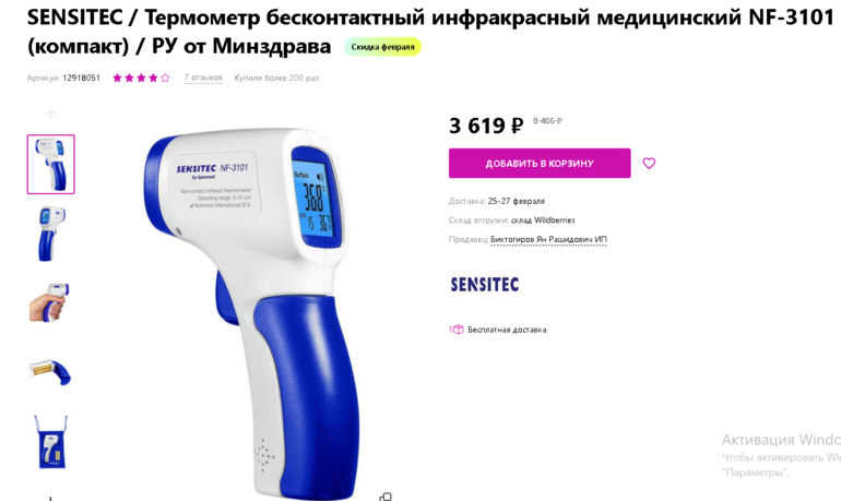 В Wildberries хорошая скидка на инфракрасные термометры Sensitec nf 3101 (3619 рублей)