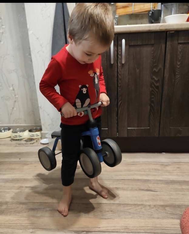 Он очень устойчивый и удобный, самая лучшая игрушка. Двухколесный нам пока точно рано.