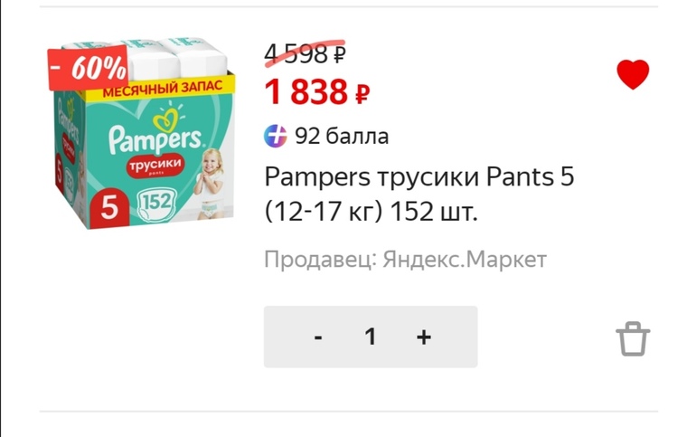 Неужели вам нравятся обычные Памперс? Цена даже со скидкой 17р/шт, а качество ужасное 🙈 Я за эту цену заказываю на WB и OZON японские трусики, мягкие как хлопок внутри и не образуется такого жуткого комка между ног, нет этих противных ароматизаторов.