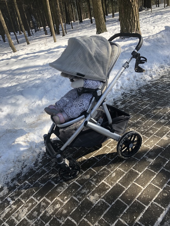В сидячем положении капор до бампера, в лежачем закрывает от солнца отлично! Бампер отстегивается и целиком и с одной стороны-что Мега удобно . Детю сидится намного выше, чем в Бугабу - мне нравится. В лежачем положении откидывается нажатием кнопки на спинке , нажимаешь одной рукой, а на Бугабу кнопки 2 и они по бокам - на Висте удобнее . В корзине для покупок 2 отсека для мелочей- там отлично разместился кошелёк - не будет лежать вперемешку с игрушками и покупками . По недочищенному парку управляла одной рукой. Уровень амортизации ещё можно оценить вот как: по льдышкам ехала так, что кофе в подстаканнике не разлился .
