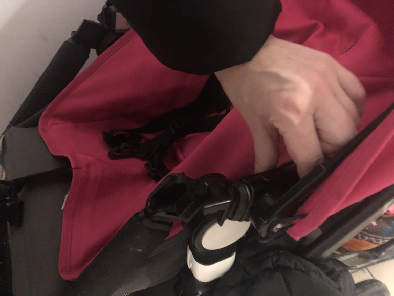 И, конечно, затаскивание за бампер коляску с пластиковой расой- логично, что она этого не пережила .