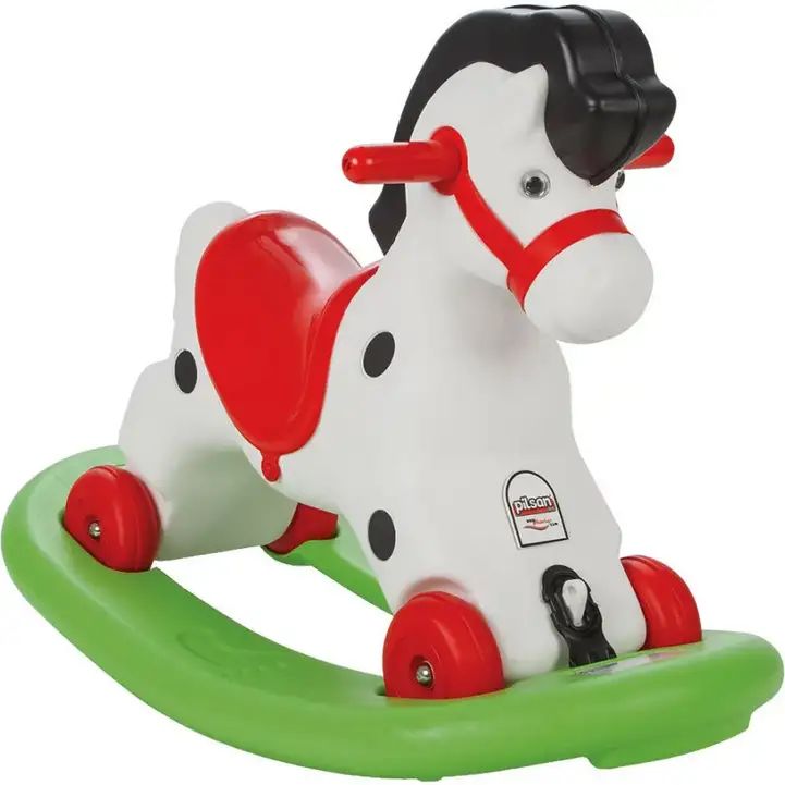 Моему старшему бабушка подарила лошадь, похожую на третье фото. В 9 месяцев. Катался много и долго. Теперь лошадь перешла к младшей по наследству. Тоже ее любит, даже несмотря на упоротый вид 6-летней деревянной лошади, жившей на открытой веранде. А иногда мои дети из-за этой лошадки и ссорятся - кому кататься (2,5 и почти 7 лет).