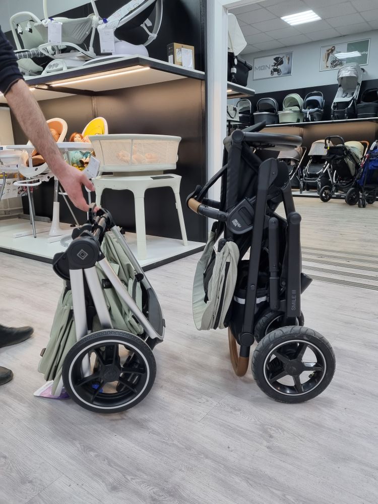 Что одна, что вторая прогулка складывается вместе с сиденьем, отличие только, что у Муна можно это сделать при положении сиденья с обоих сторон, у Бритакса нет, но не критично.