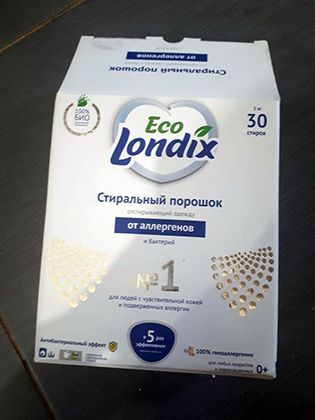 Я последнее время порошком для аллергкиов стираю, Эко Лондикс. Он чистый, в составе ничего опасного для кожи нет. И даже одежду от аллергенов отстирывает. И с пятнами хорошо справляется. Им можно руками стирать, в машинке, замачивать белье