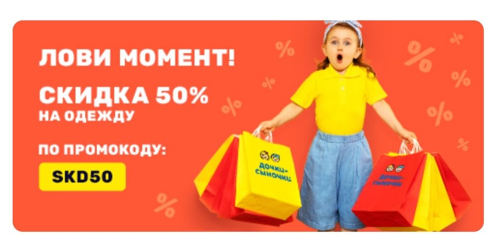 Распродажи. Скидки. Акции.Скидка 50% по промокоду на определенный раздел.