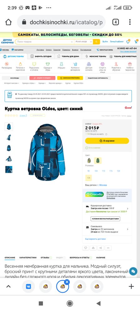 С промокодом ветровка выходит 1000р.
