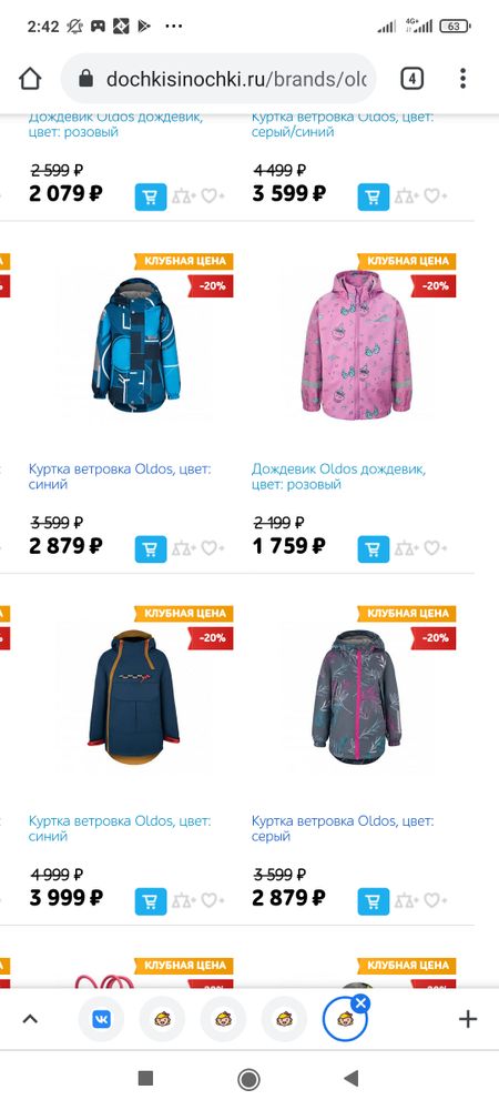 У некоторых вещей цена в карточке товара ниже, например ветровки олдос