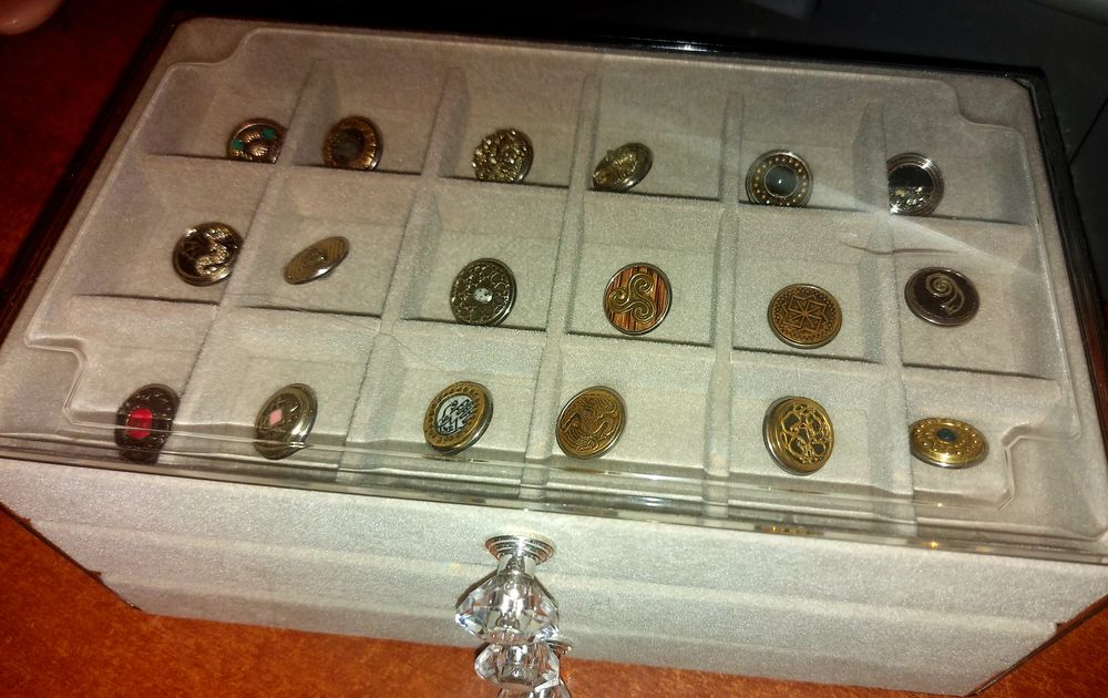 К примеру розочка выполнена из кости, синяя кнопка рядышком с кнопкой Галактика выполнена из лазурита, кнопка с Фениксом из перламутра, так же взяли кнопки на подарок из кварца, с тигровым глазом и т.д