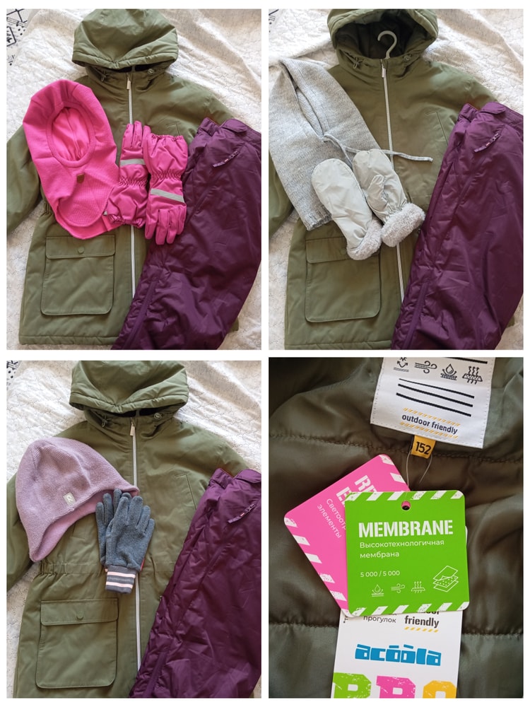 Верхняя одежда. Пришлось докупать куртку на зиму, т.к. припасённый комплект Футурино 152размера внезапно оказался мал. Ждать осени и первых скидок я не рискнула, большие размеры редко доживают до хороших цен, да еще и ребенку надо угодить с фасоном\расцветкой. Поэтому из имеющегося летом ассортимента выбрали куртку Acoola линейка Pro (~1600руб, 180гр утеплителя и даже мембрана какая-то), к ней в запасах нашлись штаны Декатлон. Теперь сомнения, как их вместе сочетать ))) Дочери всё нравится, я пока сомневаюсь, возможно, аксы поменяю. Обувь чёрная будет.