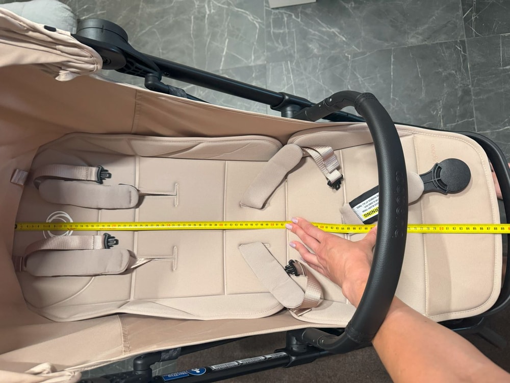 В остальном она мне скорее не понравилась: ручка высокая, даже слишком, но бестолковая, вынос относительно задней оси плохой- я наступила несколько раз и дважды за 5 минут катания случайно поставила коляску на тормоз (у меня рост 175см)