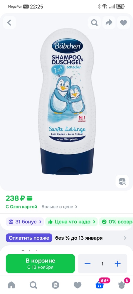 Косметика и гигиена.Ванночки и горшки, шампуни, средства для стирки и мытья, личная гигиенЗдравствуйте. Хочется послушать мнение со стороны. Раньше старшую мыла шампунем бюбхен (белый с пингвином). Потом начались санкции и он пропал. Сейчас листая озон, смотрю появился снова, но... Меня смущает цена 238 руб. Судя по отзывам он придет из Ташкента. Отзывов очень мало и все положительные. Штрихкод посмотрела (в отзывах) показало что оригинал. Но вот цена меня прям смущает. Так то шампунь сцпер был. Вот думаю подделка или как? Вы бы взяли?
