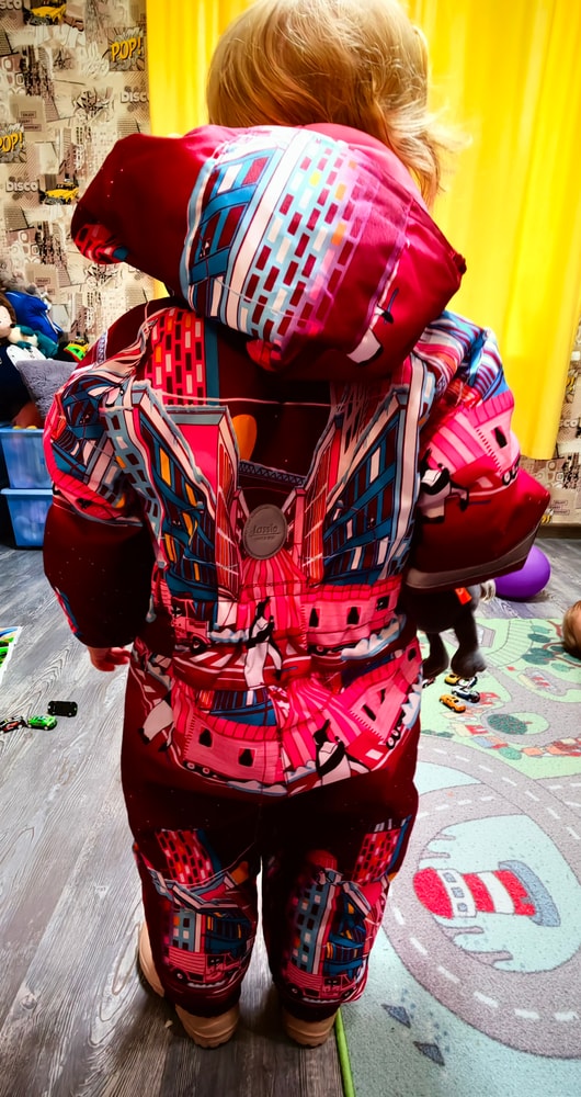 Как нам говорила девушка продавец с огромным опытом, должно быть два пузыря, на попе и на спине, для того, чтобы ребенок спокойно садился и играл. Если все в обтяг, то будет некомфортно. По первым фото, показалось, что под руками тянет даже. На животике в натяг. Вам лучше видно, конечно, посмотрите ещё раз. Если в 86 запас чуть ест , то без поддевы можно носить, другой на холода с поддевой