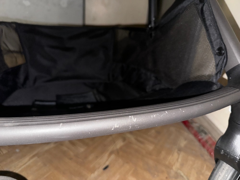 Мне кажется у вас других проблем нет, чем из-за такой фигни расстраиваемся. Если коляски в использовании то в идеальном виде ее сохранить не удастся. Ничего страшного на фото нет. Мелкие царапины.