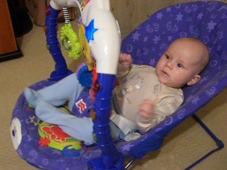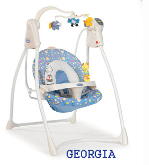 Мы сначала планировали качели, но уж очень они хлипкие оказались, когда стали в магазине рассматривать... Купили шезлонг, кстати, такой же чиковский как на фотографии. Очень довольны! Сейчас нам 7 месяцев, используем как стульчик при поездках в гости... да и летом на пикники удобно будет брать (много места не занимает)