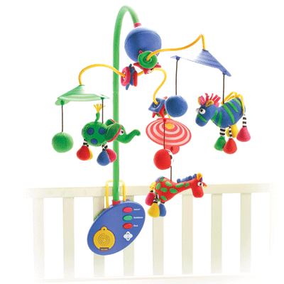 мобиль в кроватку - очень хорошая вещь! особенно если несколько мелодий и яркие игрушки. у нас был Tiny love (symphony-in-motion).