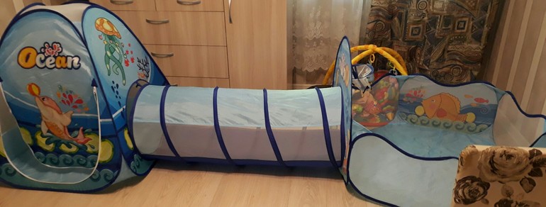 ЗЫ. Пушки кстати, стреляют этими же шарами. А можно бросать шары в это же баскетбольное кольцо. По размерам пока Владик входит без проблем и поперек. Думаю, лет до 3-х будет интересно. К тому же его всегда можно сдуть.. Жду комментов.