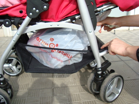 В коляске имеется вместительная корзина для вещей, продуктов, кстати, класть пакет удобно, при этом не тревожишь ребенка, и не беспокоишь его сон