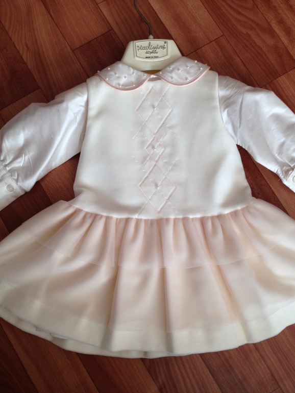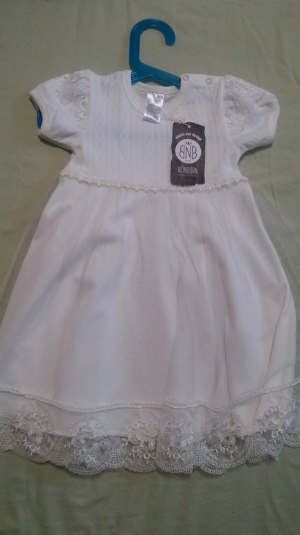 Покупали в США. Очень нежный сарафан. Атласные ленточки, кружево, красивая спинка. Дочка переросла(