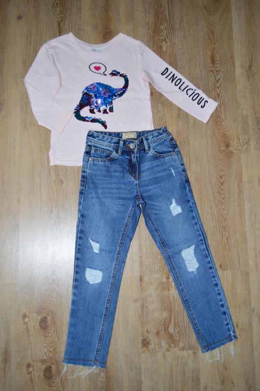 Комплект: новые джинсы некст и топ из хлопкового трикотажа с рисунком из двухсторонних пайеток спереди. 1500р. г.Саранск почта