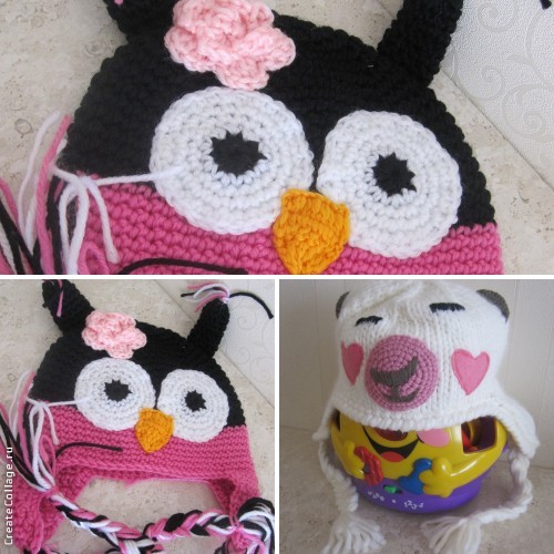 НОВЫЕ 2 шапочки сова и мишка (1-3года)