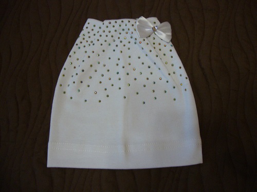Шапка молочного цвета с оранжевыми стразами и бантиком.В НАЛИЧИИ.