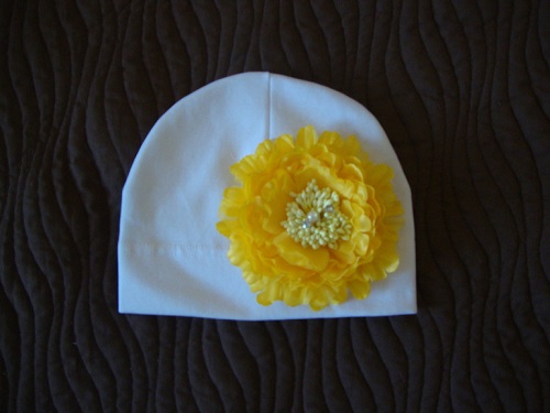 Новая трикотажная шапочка с декоративным цветком от года до 3-х лет.