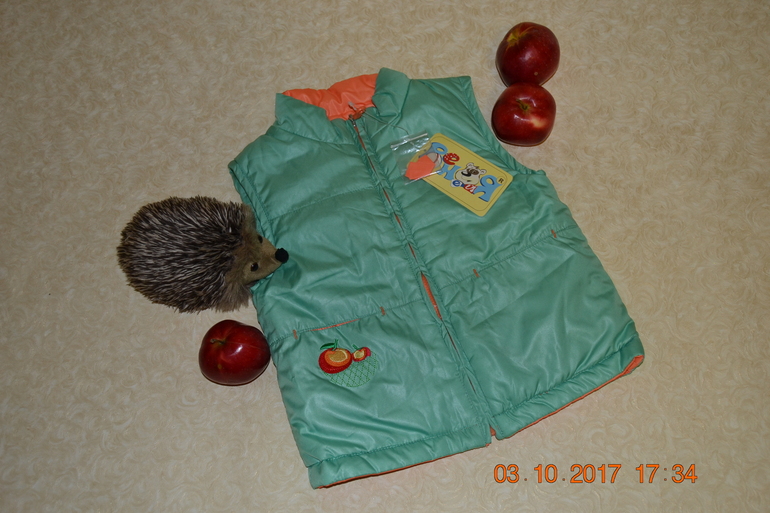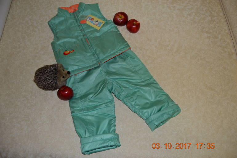 Одежда 18-36 мес (1,5-3 года)Продам новый(с этикетками )комплект.Актуальное,неизбитое сочетание цветов.))) Утепленный. Демисезон.Жилет двусторонний(плащевка),с красивой аппликацией.Брючки утепленные,на х/б. подкладе.Подойдет и мальчику и девочке(для тех,кто устал от розового и сиреневого))). Фирма Венейя. На рост56/ 92,Жилет можно носить до 104 см. Мы переросли...Цена 1 200!( за жилет + брючки).С почтой дружу.