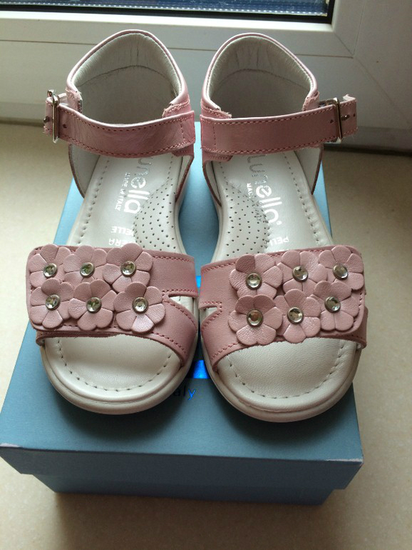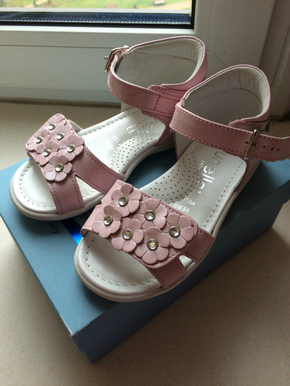 Спереди на липучке, по стельке до канта 16, полностью 16.5.