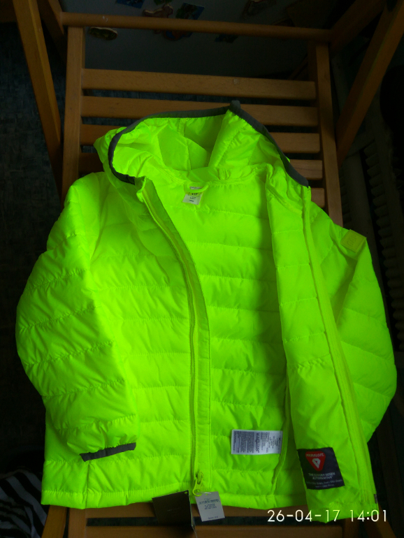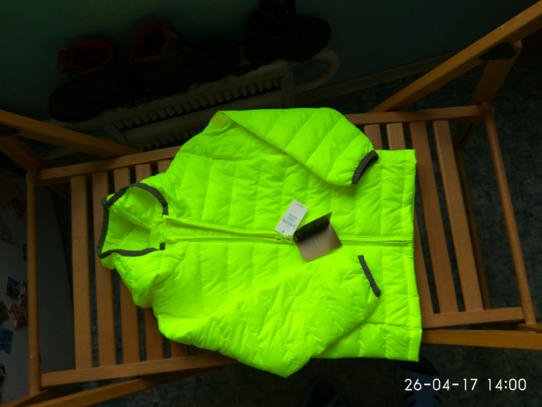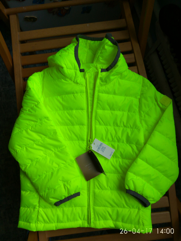 Стеганая куртка, размер 4 года на рост 104-108 см. Фирма GAP, США. Два боковых кармана на кнопках. Цвет ярко жёлтый, намного ярче чем на фото. Замеры: длина рукава от плеча 37 см, ПОГ 37 см, длина по спинке 42 см. Цена 2000 руб.![]()