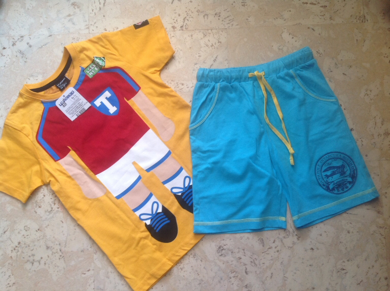 Поло Вайкики р6-7л, ткань отличная( та что не тянется, не мнётся и не деформируется при стирке) 399руб, шорты Де салито( заказывала в сп, бирка при получении так и была на булавке!), р122, есть утяжки в талии, цвет серо-голубой( сизый), 499руб