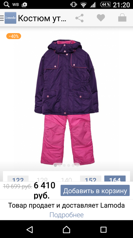 Тёплый, продуманный зимний комплект. Подойдёт стройной маме или девушке подростку. Размер 164, на мой 160 сидит хорошо. Покупала племяннице, но она очень худая, не подошло, мне на 44 полный размер узок в штанах. Почта. Самовывоз из ивантеевка или встречи Пушкино